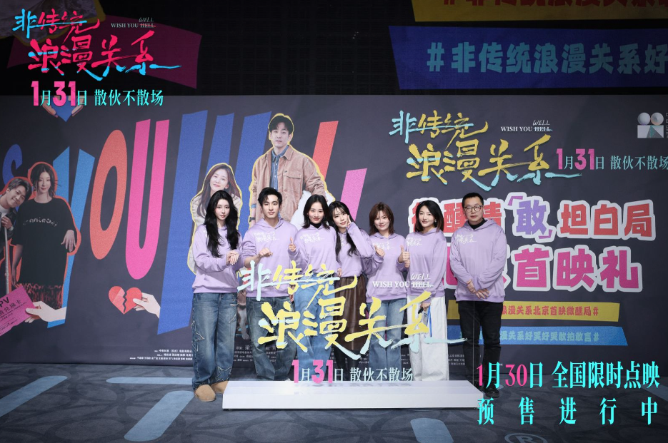 电影《非传统浪漫关系》由中影创意(苏州)电影有限公司、江苏省电影集团有限公司、昆山市周庄双桥电影制片有限公司、阿那亚影业(北京)有限公司、北京小漾影业有限公司、中影创意(北京)电影有限公司、江苏苏影橙风影业有限责任公司出品,传影周庄(江苏)影视文化有限公司、三亚金椰海影有限责任公司联合出品,中国电影产业集团股份有限公司、天津猫眼文化传媒有限公司发行。影片浪漫预售中,将于1月30日全国限时点映,1月31日正式上映,走进影院,在欢笑中开启这场关于“爱与自由”的新年必修课。