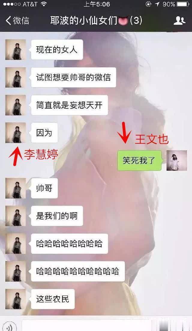 其中,名叫李慧婷的好友直言“现在的女人想要帅哥的微信,简直就是异想天开”“帅哥都是我们的,这些农民”等言论,而王文也则将截图转发,瞬间引发舆论风暴。